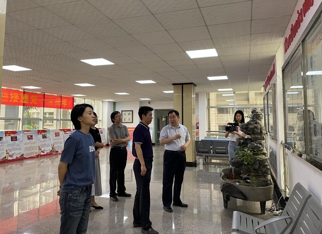 最后,仵崇智等人实地参观了物理与电子工程学院新时代党建示范创建和质量创优工作展览、党史学习教育专栏、党员活动室、“双带头人”党支部工作室等。