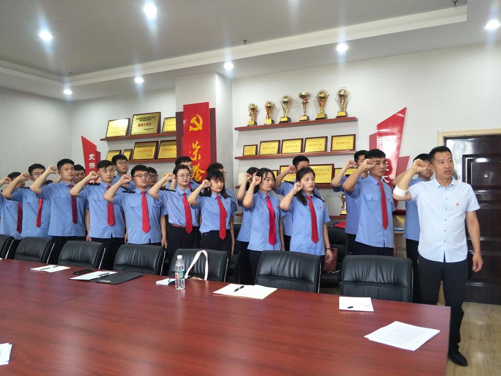 学生工作党支部的党员们为学生党员佩戴党徽后,马纪带领全体新党员面向党旗庄严宣誓:“拥护党的纲领,遵守党的章程,履行党员义务,执行党的决定,严守党的纪律,保守党的秘密”,这是全体新党员对党的真挚誓言,也是新党员对自己新身份的一次深刻认识。