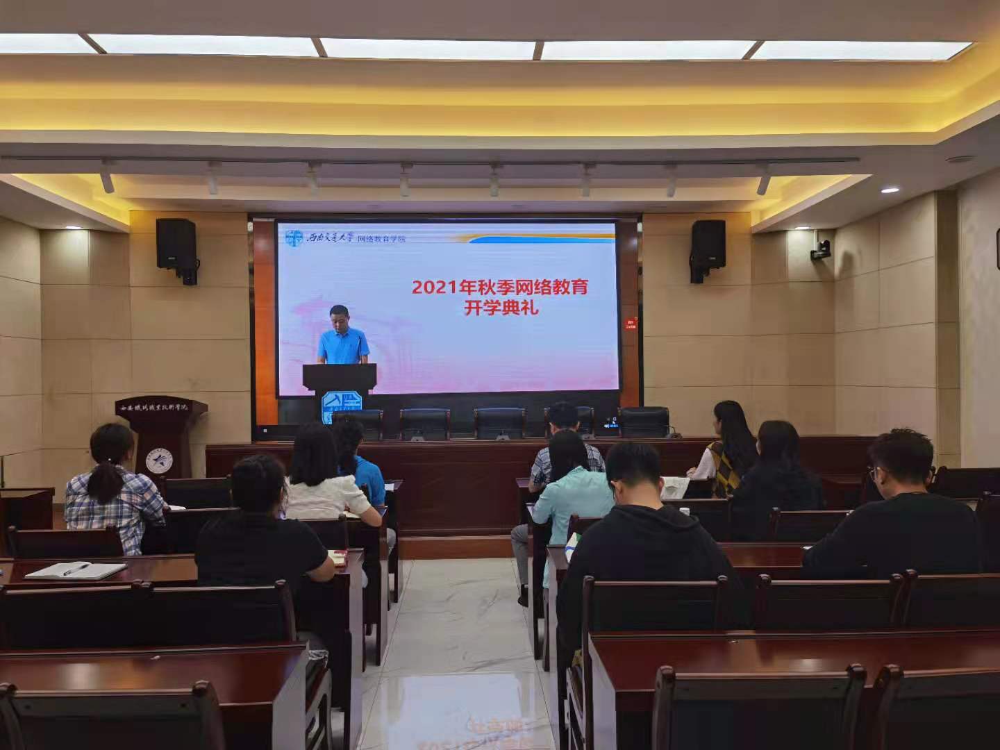 9月25日上午,继续教育学院全体人员在自强校区干培教室通过视频会议系统参加西南交通大学继续教育学院2021秋季新生“云”开学典礼,学生利用雨课堂在线收看,开学典礼由西南交通大学继续教育学院副院长姬晓旭主持。