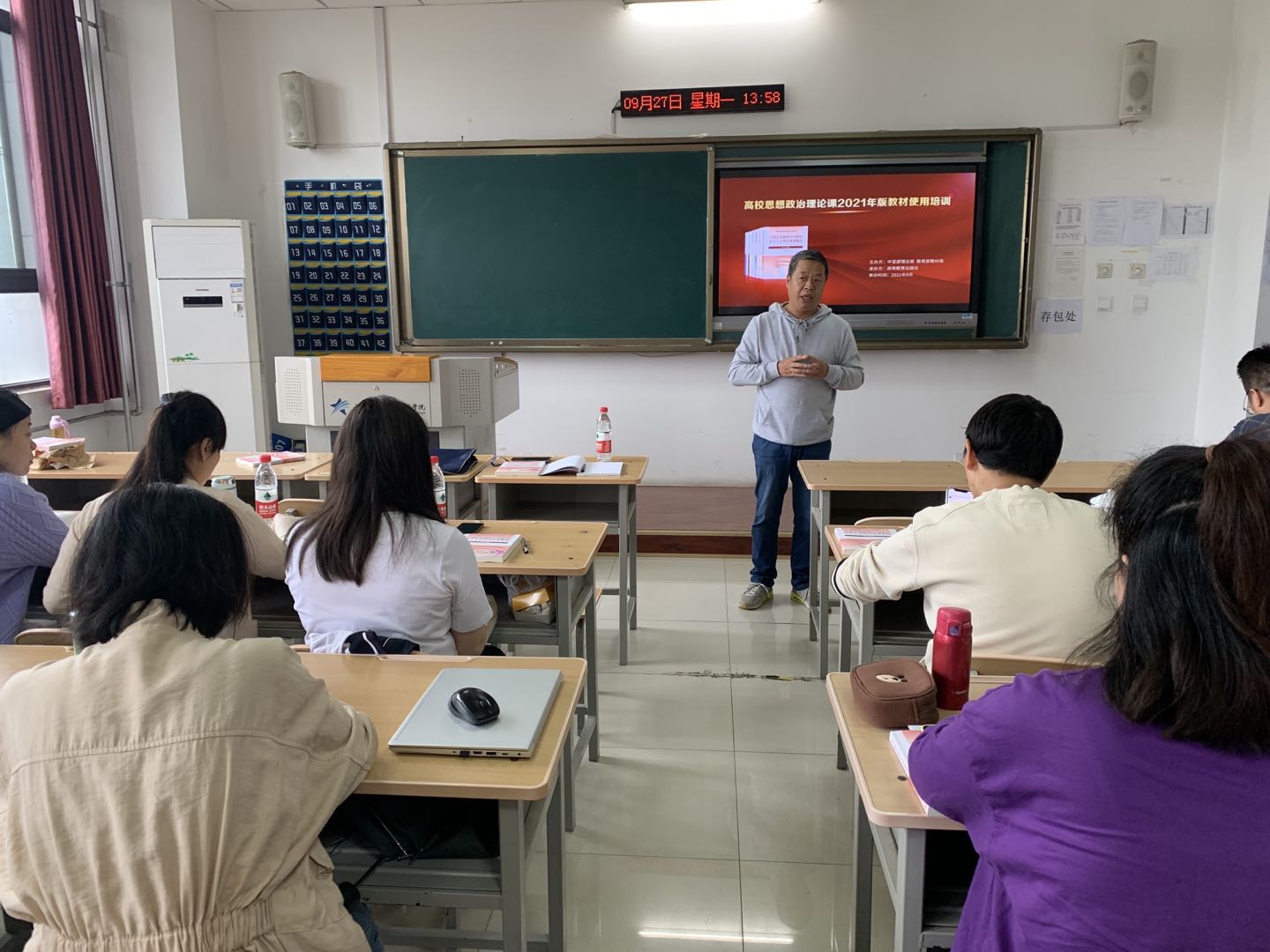 9月27日至29日,教育部召开高校思想政治理论课2021年版教材使用培训班,集中部署中央实施马克思主义理论研究和建设工程6门课程2021年版教材的使用工作并开展网络培训。 27日至28日下午,鸭脖在港务校区牵引209教室设置全国高校思想政治理论课2021版教材使用培训分会场,集中学习《毛泽东思想和中国特色社会主义理论体系概论》和《思想道德与法治》两门课程新教材使用技巧。马克思主义学院院长景延鹏、办公室主任赵建英以及马克思主义学院、土木工程学院全体专兼职思政课教师计40余人全程参加了本次培训会。