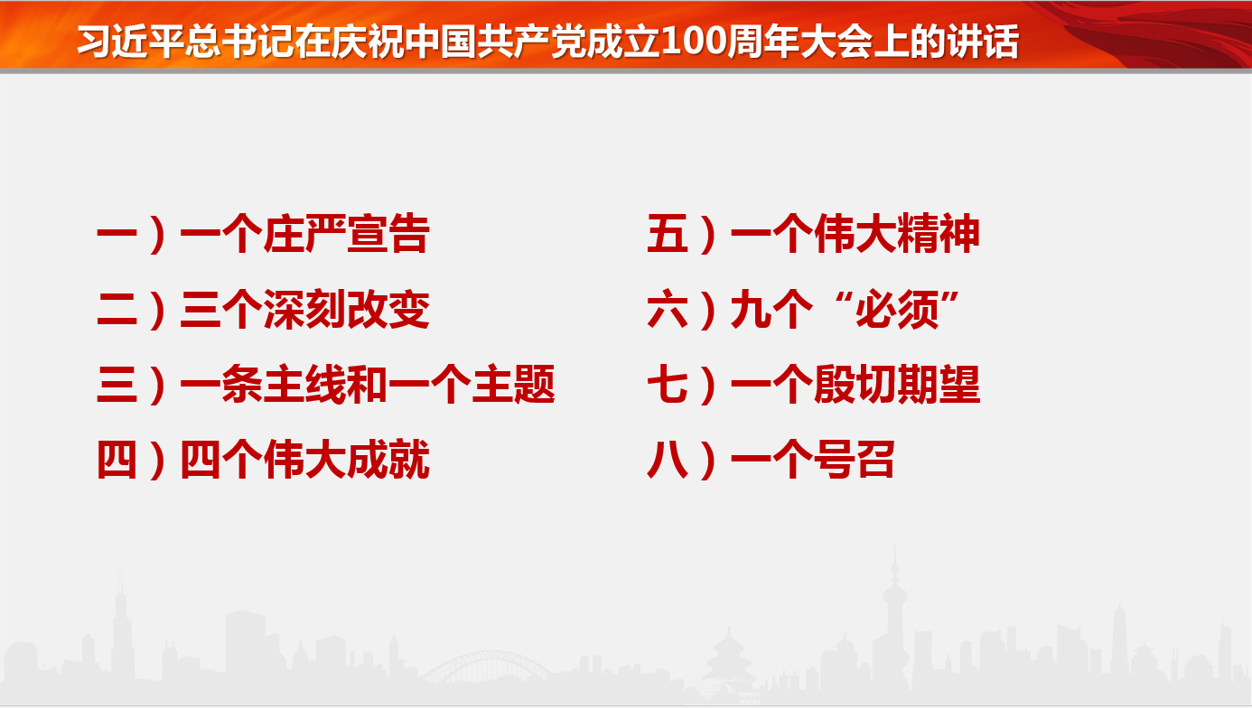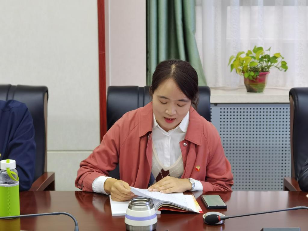 赵建英首先宣读了学院党史学习教育领导小组办公室下发的《关于开展党史学习教育第九次集中学习的通知》,让全体党员明确本次学习的内容及目的。宣传委员黄旌芮带领党员们学习了《习近平总书记在庆祝中国共产党成立100周年大会上的讲话精神》原文,并将它总结为一个庄严宣告、三个深刻改变、一条主线和一个主题、四个伟大成就、一个伟大精神、九个“必须”、一个殷切期望、一个号召。