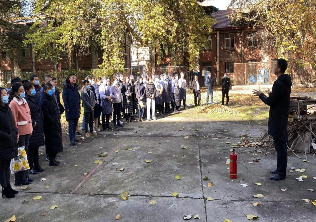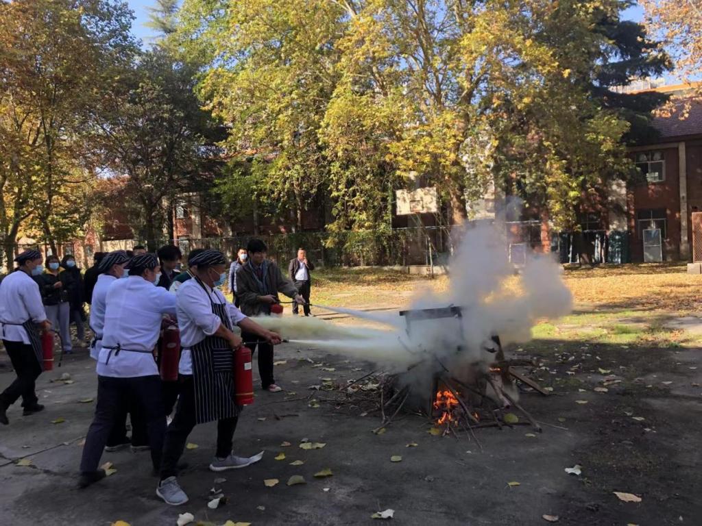 在演练现场,安全保卫科特邀请消防知识培训专家李宏辉教官从火灾起火的原因、出现火灾时如何第一时间安全科学地逃生、如何科学有效使用消防器材救火等方面为职工作了详细深入的讲解,同时示范了灭火器的正确使用方法。随后,消防专家又指导校区职工分批进行了灭火实练演习。
