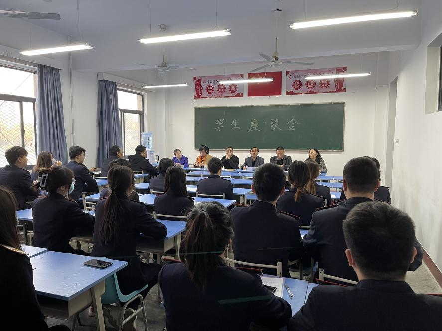座谈会上,各班学生代表积极踊跃发言,各抒己见,结合自身学习生活情况以及会前班级调研情况对本学期授课教师的教学内容、教学方法及教学效果进行交流,就教学设备、生活需求、教育教学管理等方面提出建议。学院领导和老师们认真倾听、详细记录,一一解答学生们所提出的问题与困惑。