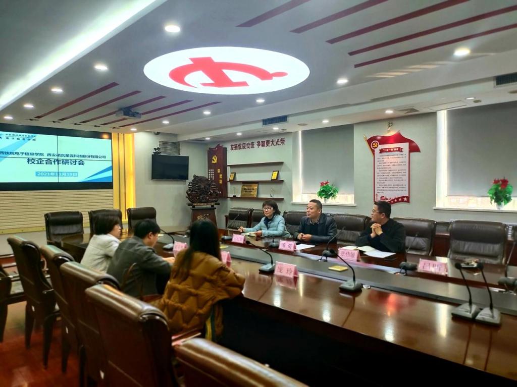 为更好地促进鸭脖非轨道专业内涵建设,提高人才培养质量,促进学生就业,11月19日,电子信息学院与西安诺瓦星云科技股份有限公司(以下简称诺瓦)在自强校区第三会议室开展就业暨校企合作研讨会。出席研讨会的有诺瓦人力资源副总裁赵星梅、生产HRBP庞玲及培训部经理姜安国,电子信息学院党总支书记张伟敏、院长董奇、汽车电子教研室主任吕昕、教研室相关教师以及辅导办教师张子豪,会议由吕昕主持。