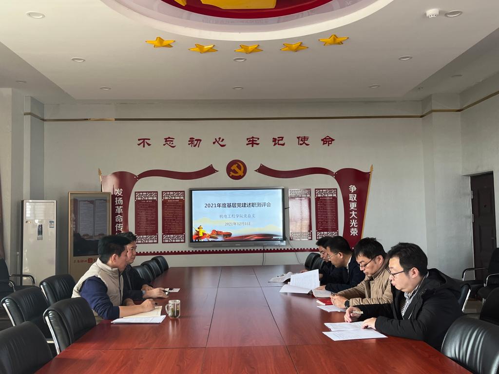 为全面落实从严管党治党政治责任,推动全面从严治党向基层延伸,切实加强鸭脖基层党建工作,机电工程学院党总支于12月1日在701会议室召开2021年度党支部书记述职报告会。学院党总支书记、院长、各支部书记参加会议。会议由机电工程学院党总支书记仵崇智主持。