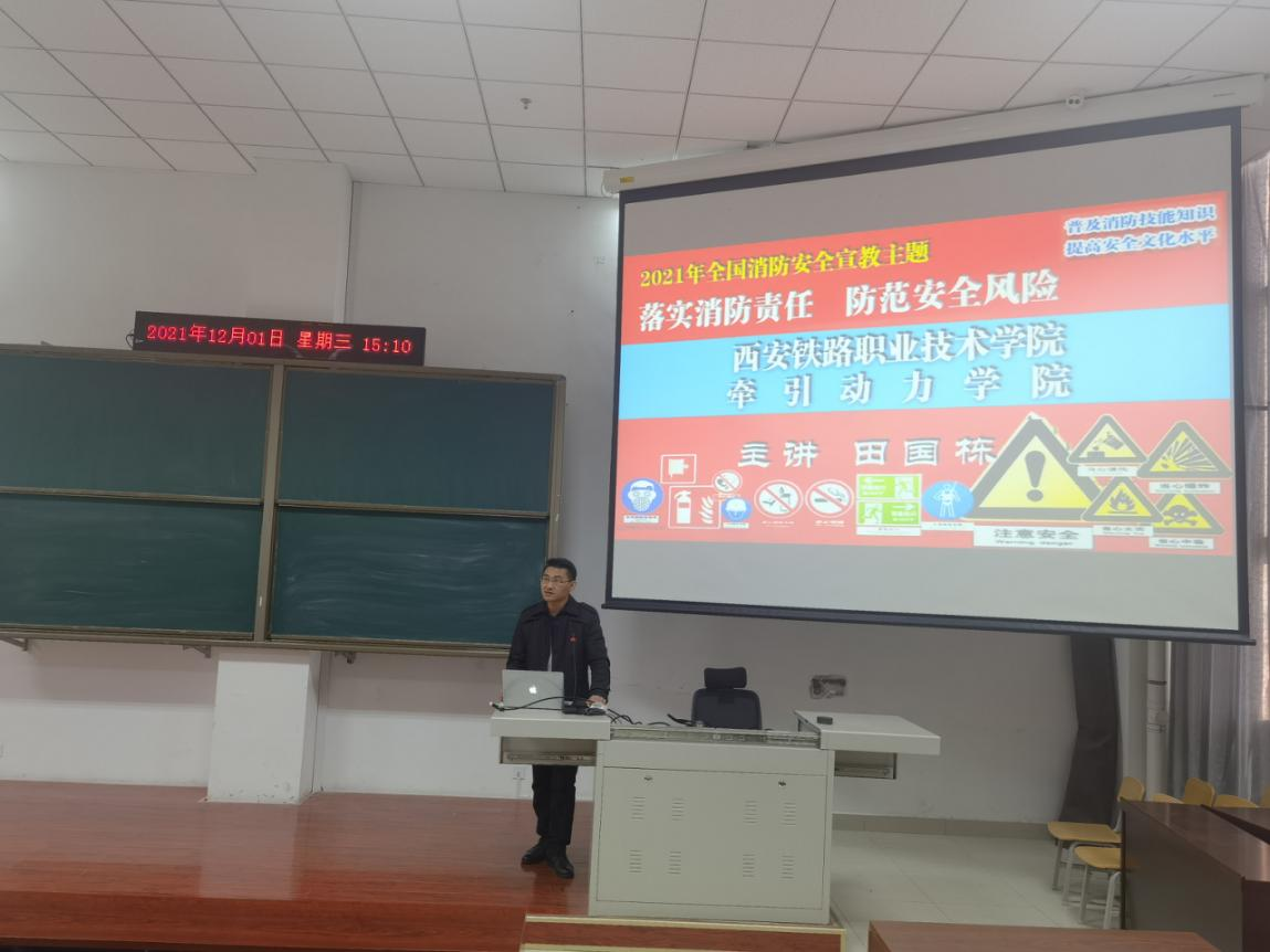 为增强防火意识,掌握消防安全知识及消防灭火器材的使用,提高火场逃生自救能力。12月1日下午,牵引动力学院开展消防安全专题培训,全体教职工参加了培训。