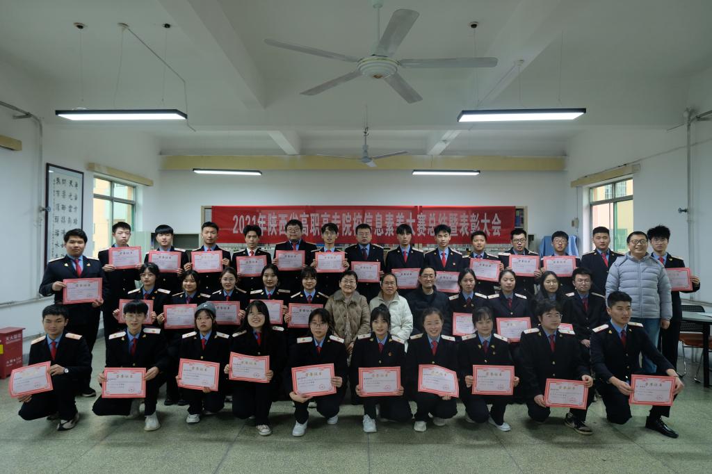 12月10日,陕西省高职高专院校信息素养大赛yabo鸭脖官网校赛总结表彰会在自强校区图书馆举行。会议由图书馆老师陈晔主持,图书馆办公室主任黄幼菲宣读了《关于公布2021年陕西省高职高专院校信息素养大赛yabo鸭脖官网校赛获奖结果的通知》。图书馆馆长袁素瑛、主任黄幼菲和姚彤老师分别为获奖同学颁奖并合影留念。