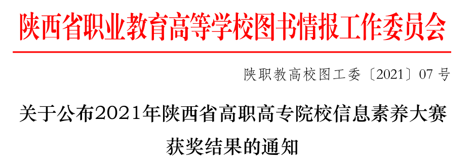 根据《关于开展2021年陕西省高职高专院校信息素养大赛的通知》(陕职教高校图工委〔2021〕2号)文件精神,鸭脖于今年10至11月组织了2021年陕西省高职院校信息素养大赛校赛。