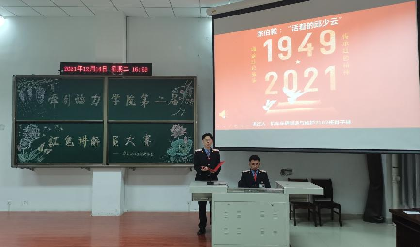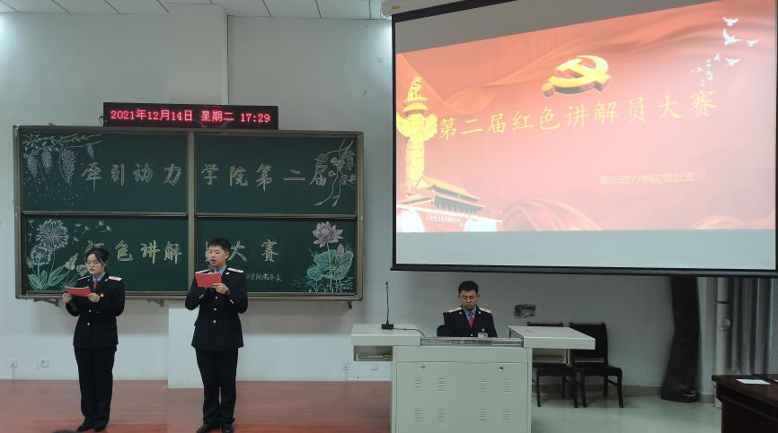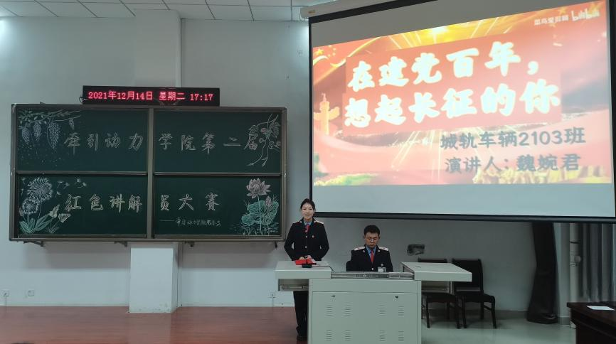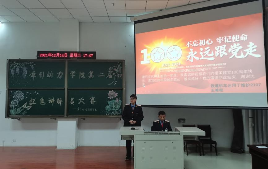 百年征程波澜壮阔,百年初心历久弥坚。中国共产党的百年历史,就是一部践行初心使命的历史,就是一部与人民心连心、同呼吸、共命运的历史。12月14日下午,牵引动力学院党总支举办第二届红色讲解员大赛,本次比赛的评委团由牵引动力学院党总支书记李贞伟,组织委员王燕萍,团总支书记杨若,辅导员赵军、辅导员刘晨丹和辅导员李茜组成,各班学生代表到场观赛。