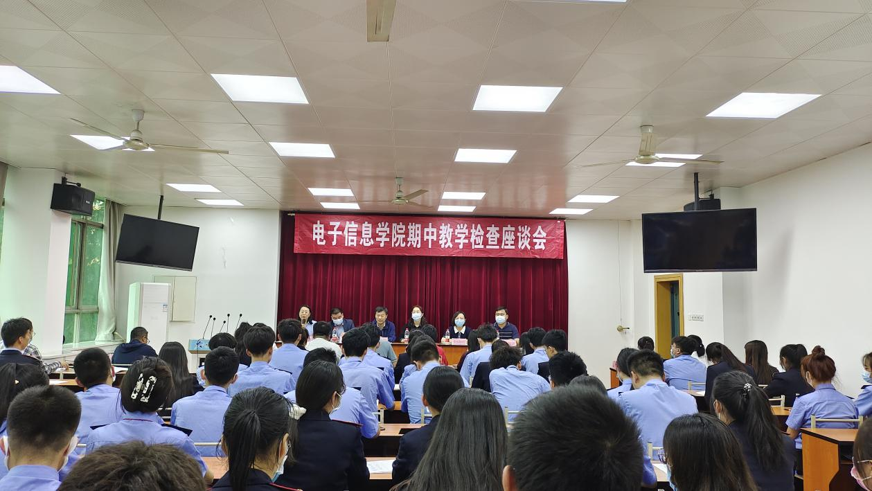 5月12日下午,电子信息学院在教学楼407教室召开2021-2022第二学期期中教学检查座谈会,发展规划处副处长樊润慧、教务处教学科科长贠晓晴,电子信息学院党总支副书记吴西蒙,副院长冯国良出席会议,基础部、马克思主义学院教师代表、各教研室主任和教学督导组成员以及自强校区33个班级66名学生代表参加会议。