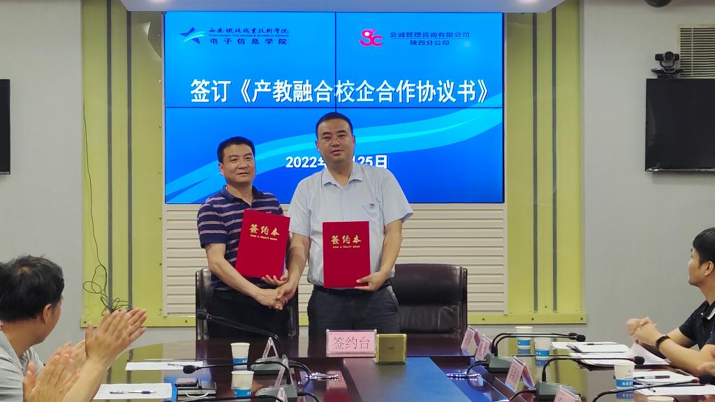 冯国良首先向公诚管理咨询有限公司陕西分公司一行的到来表示热烈的欢迎和感谢。就建校历史、办学特色、人才培养、专业设置和社会服务等方面介绍了学院基本情况。并指出本次签约授牌仪式,是继2021年党支部联建共建后的进一步深入合作,是校企党建互学共建后的走深走实,希望校企双方从学生实习培训、教师实践锻炼、专业资源建设等方面开展多层次、多形式的合作,同时希望企业专家能常来鸭脖传经送宝、指导工作,实现校企互促共进。电子信息学院将继续为企业行业不断培养出素质高、能力强、技术硬的优质人才。