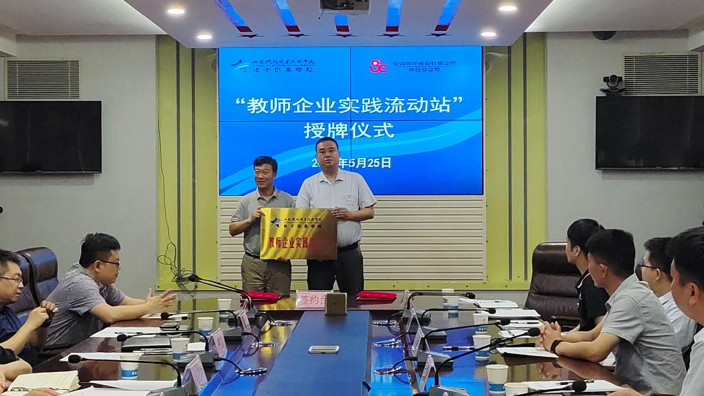 为深化校企合作,实现校企联动、协同育人,5月25日下午,电子信息学院与公诚管理咨询有限公司陕西分公司在鸭脖自强校区第三会议室开展校企合作签约授牌仪式暨党支部联建共建主题党日活动。公诚管理咨询有限公司陕西分公司总经理邵宏平、第一党支部书记潘文晓、项目经理杨松涛以及6名支部党员受邀参加活动,学院校企合作处副处长马建萍、副科长朱彤、电子信息学院党总支书记吴西蒙、副院长冯国良参加活动,大数据党支部书记杨国荣及15名支部党员、教师代表参加活动。