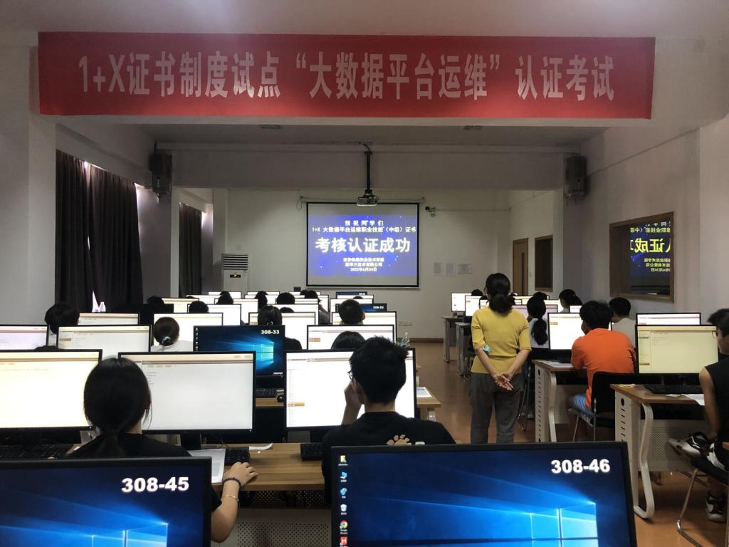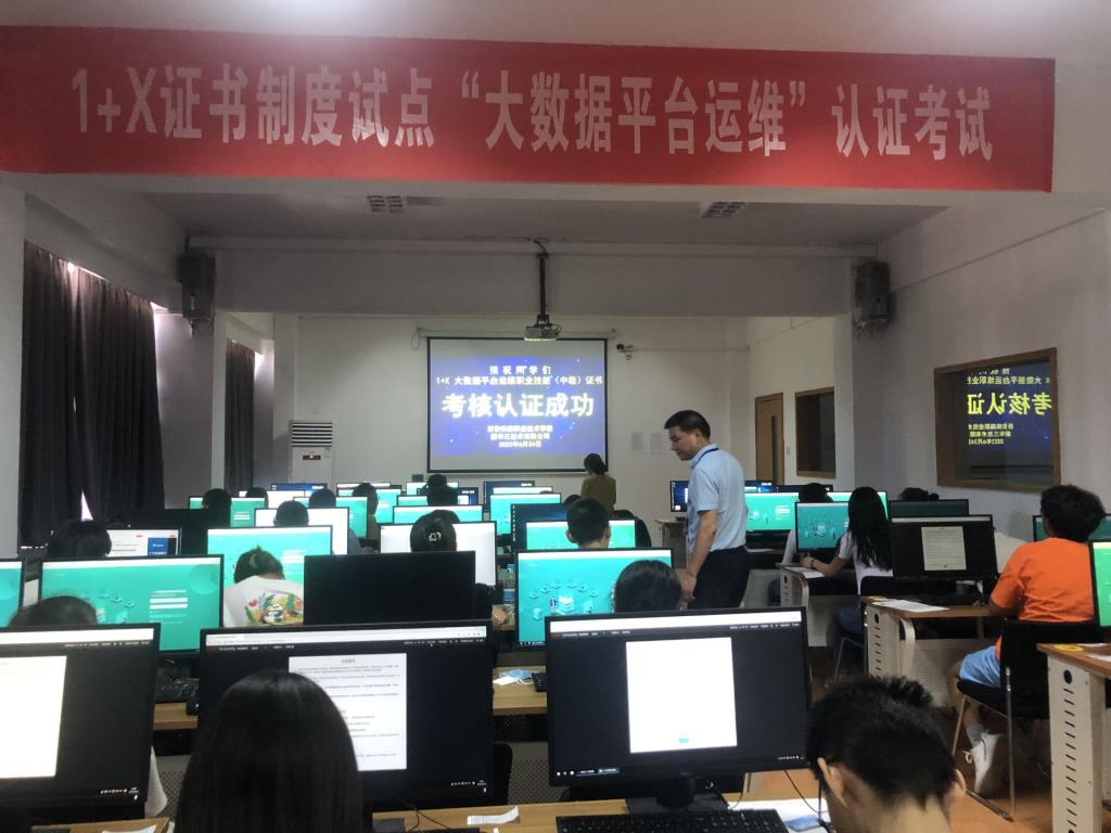 为贯彻落实《国家职业教育改革实施方案》要求,进一步推进学校“1+X”职业技能等级证书试点工作,6月24日,“1+X”大数据平台运维职业技能等级证书(中级)认证考试在鸭脖自强校区成功举行,电子信息学院大数据技术专业42名学生参加了此次考试。