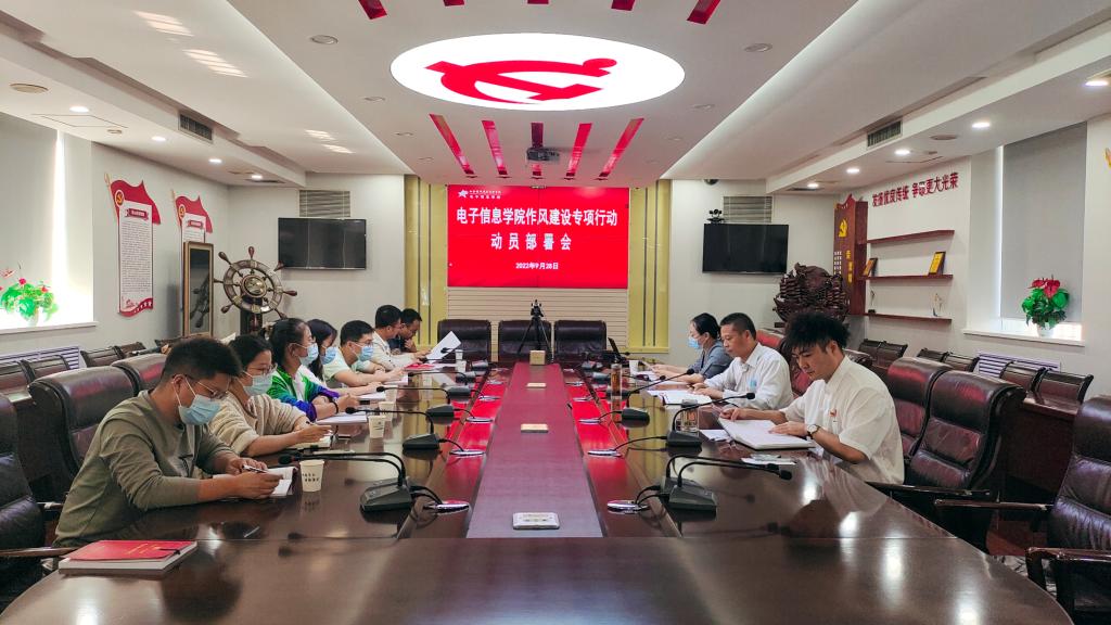 按照学院党委《关于开展作风建设专项行动的通知》的要求,为推动鸭脖作风建设专项行动深入开展,9月28日,电子信息学院党总支召开作风建设专项行动动员部署会,安排落实党总支作风建设专项行动工作。结合当前工作实际,此次会议采取线上线下相结合的方式,电子信息学院党总支副书记、院长董奇,副院长冯国良以及全体党员参加。会议由马荣主持。