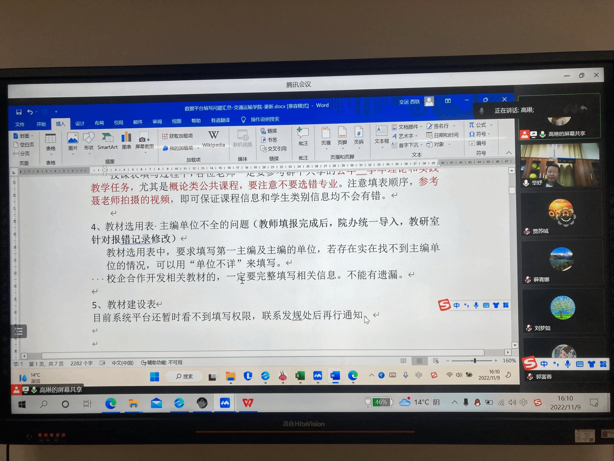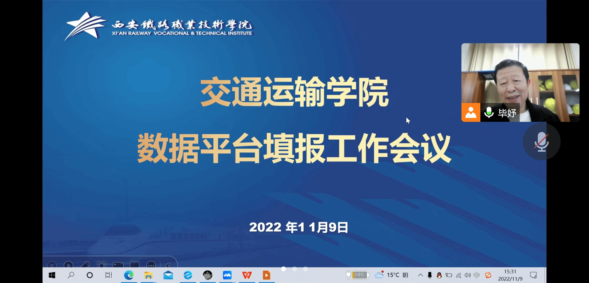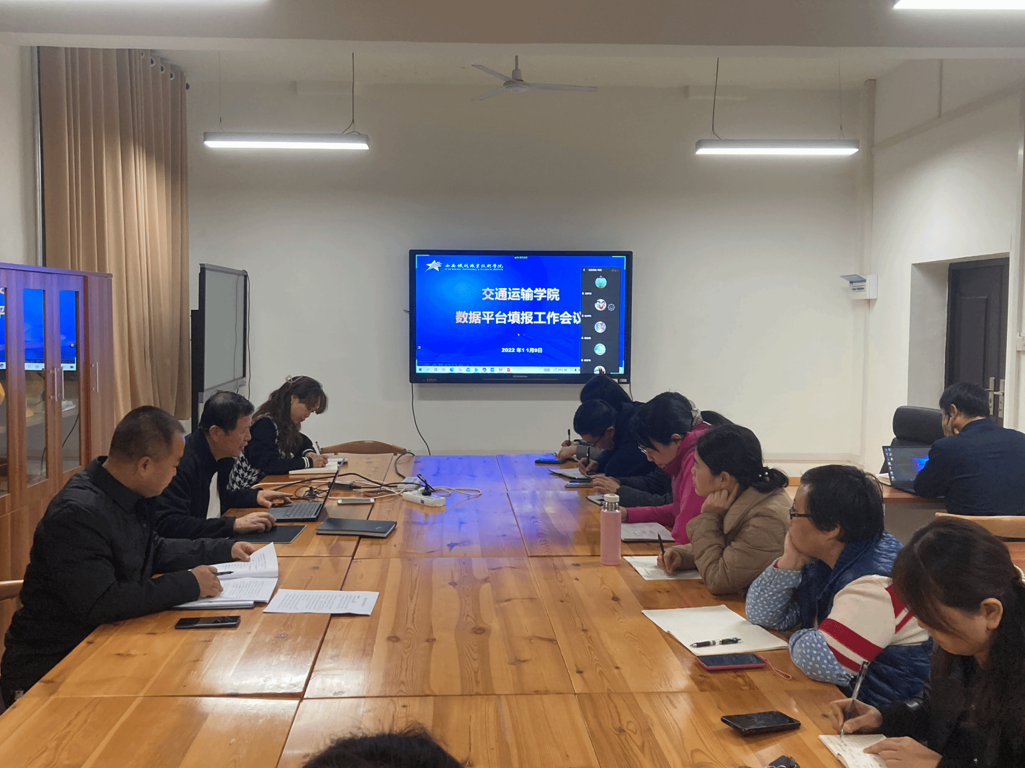 11月9日下午,交通运输学院采用线上线下相结合的方式组织召开了数据平台填报工作会议。交通运输学院院长徐小勇、副院长王公强、办公室主任薛青娜、副主任高琳、教务员聂晶晶、各教研室主任、专业带头人及在校封闭教职工参加了会议。会议由徐小勇院长主持。