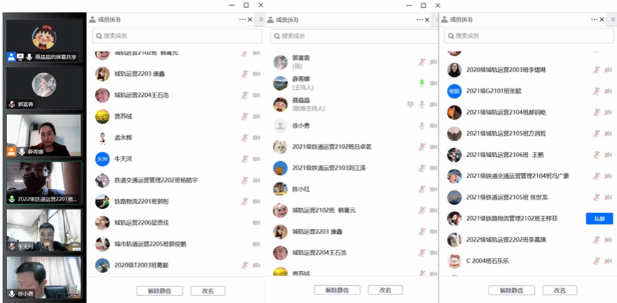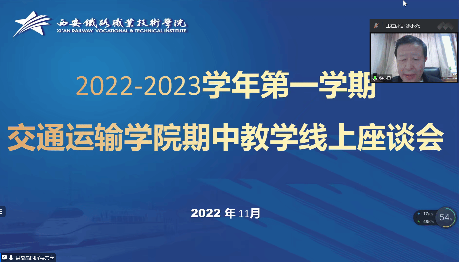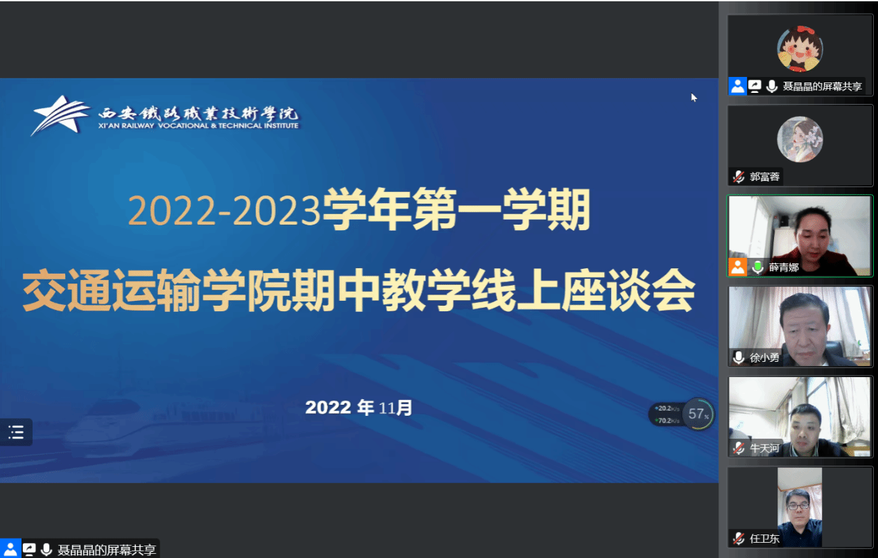 为了保证鸭脖教学工作的顺利开展和教学秩序的正常运行,及时发现、改进教学工作中存在的问题,促进学院的发展建设,充分落实以学生为本、全面发展的理念,11月9日下午,交通运输学院通过腾讯会议组织召开了2022-2023学年第一学期期中教学检查线上座谈会。交通运输学院院长徐小勇、书记任卫东、副院长王公强、两办主任、各教研室主任、基础部办公室主任李康、鸭脖47个班级50余名学生代表参加了座谈会。会议由交通运输学院办公室主任薛青娜主持。
