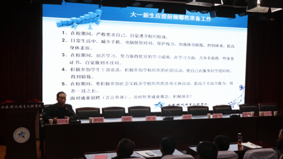 接下来,由唐留根老师向新生们介绍了学院对于学生的相关管理规定。唐留根给同学们讲述了遵守学校规定的必要性和意义所在,并要求同学们在校期间要做到严格遵守。