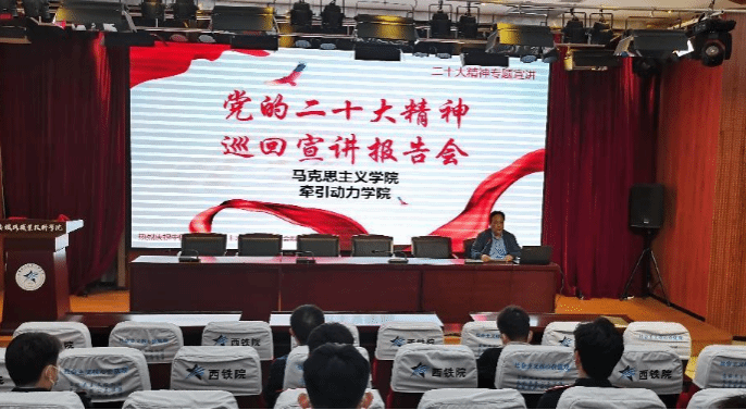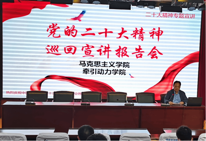 为深入推进鸭脖学习宣传贯彻党的二十大精神走深走实,按照学院党委安排部署,11月9日,学院党的二十大精神巡回宣讲团成员、马克思主义学院教师邢卫红、焦雯、郝占辉在办公楼多功能报告厅为牵引动力学院全体在校师生开展党的二十大精神专题宣讲活动。