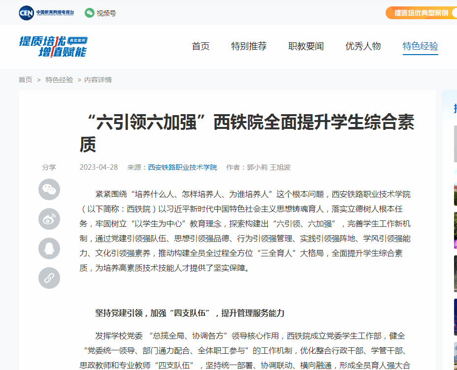 中国教育网络电视台:“六引领六加强”yabo鸭脖官网全面提升学生综合素质