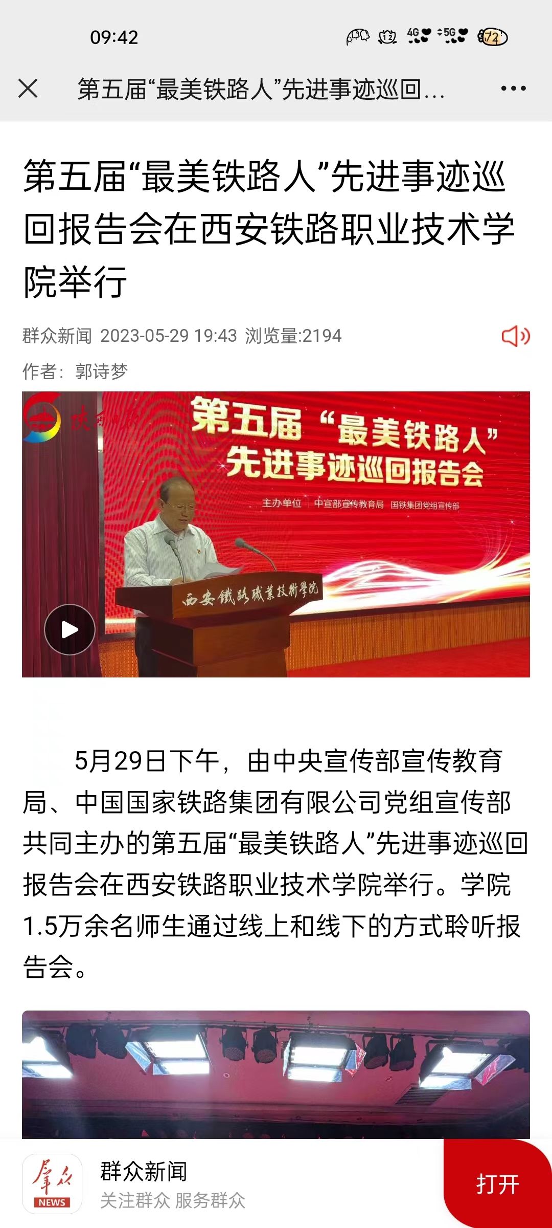 群众新闻网:第五届“最美铁路人”先进事迹巡回报告会在yabo鸭脖官网举行