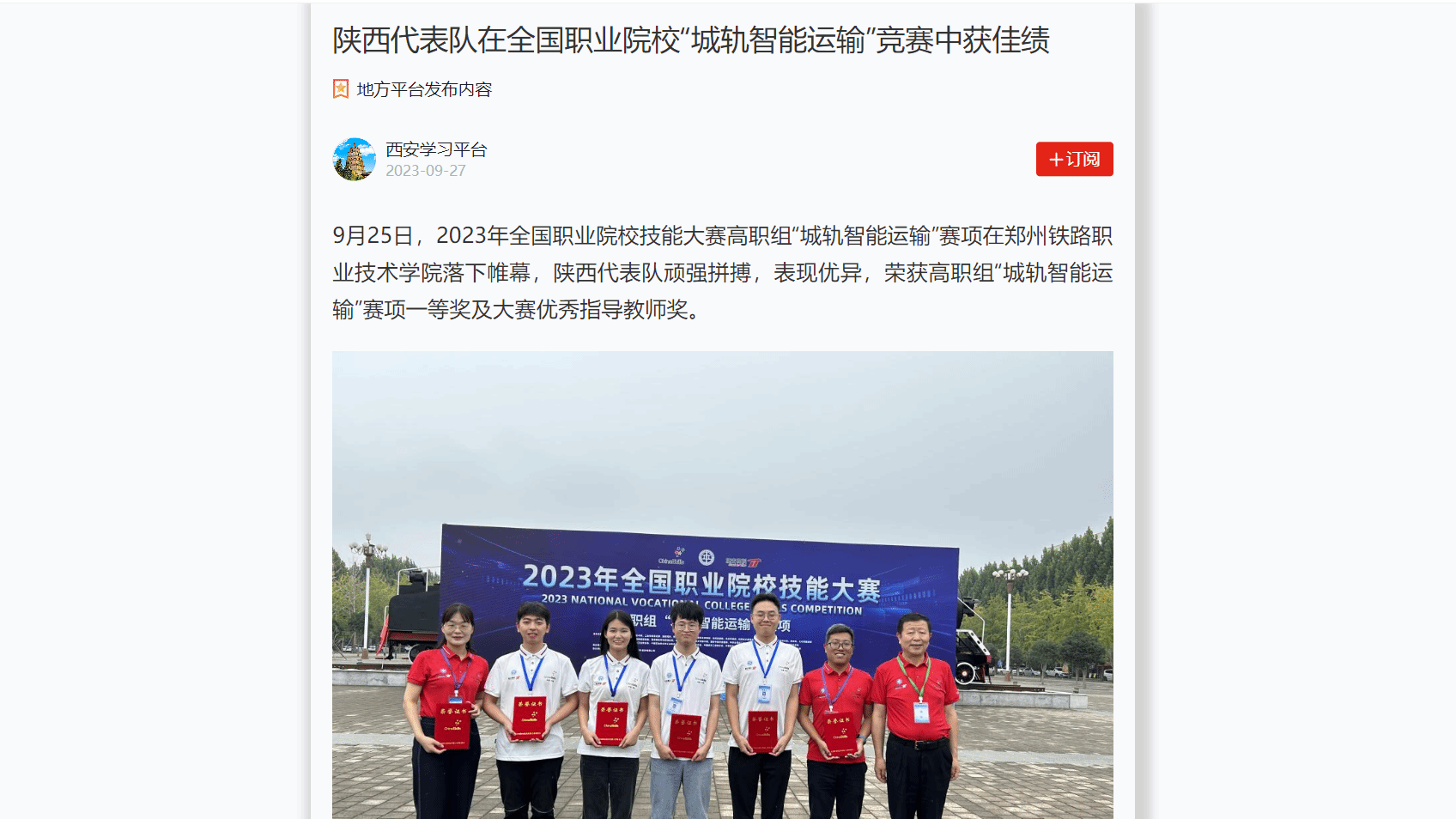 陕西代表队在全国职业院校“城轨智能运输”竞赛中获佳绩