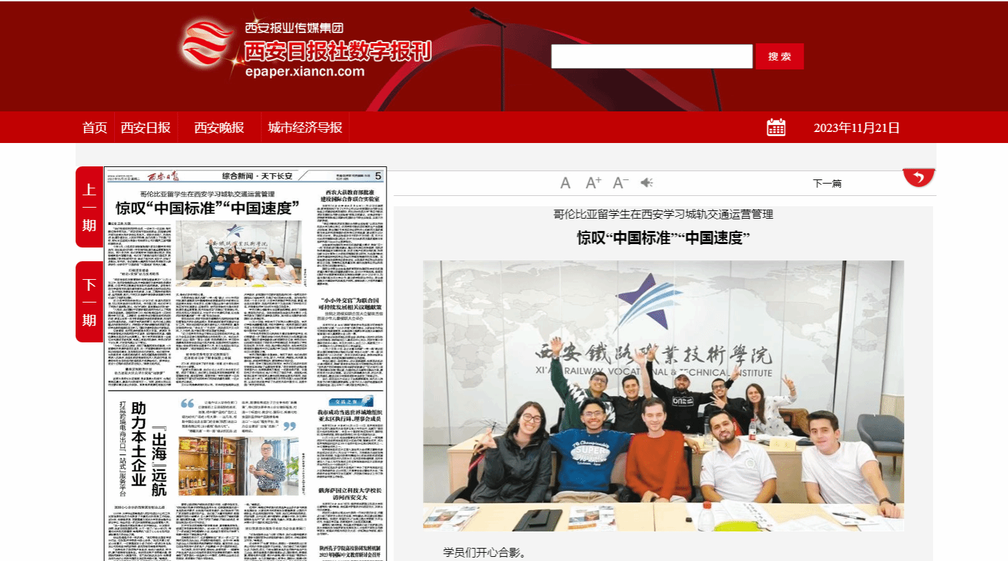 西安日报:哥伦比亚留学生在西安学习城轨交通运营管理 惊叹“中国标准”“中国速度”