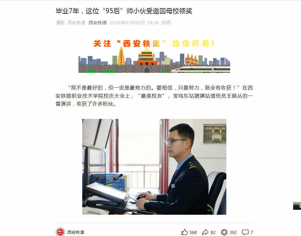 毕业7年,这位“95后”帅小伙受邀回母校领奖