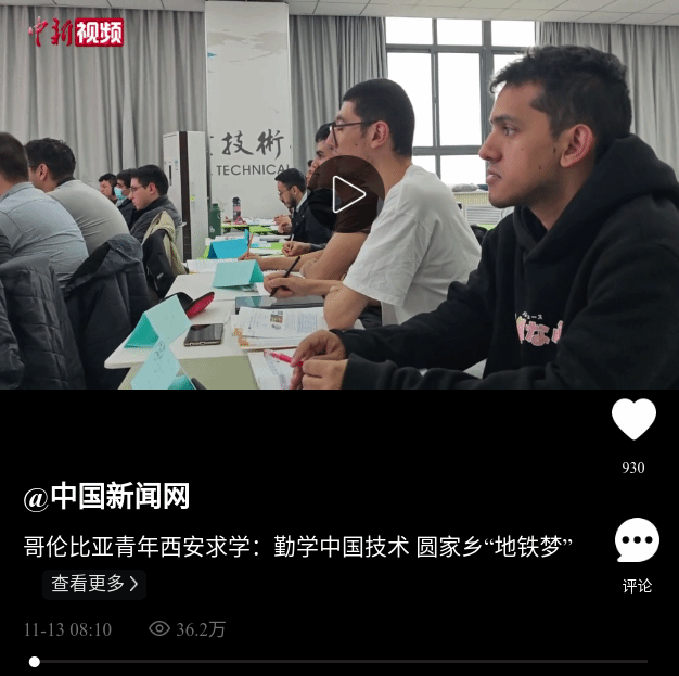 哥伦比亚青年西安求学:勤学中国技术 圆家乡“地铁梦”
