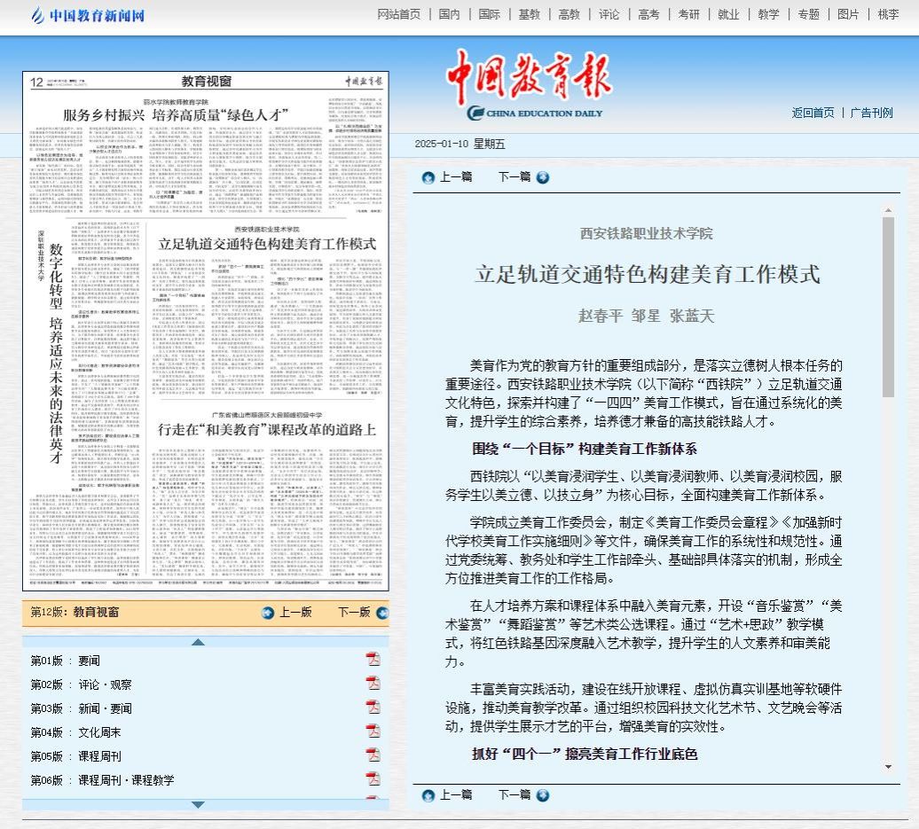 《中国教育报》:立足轨道交通特色构建美育工作模式