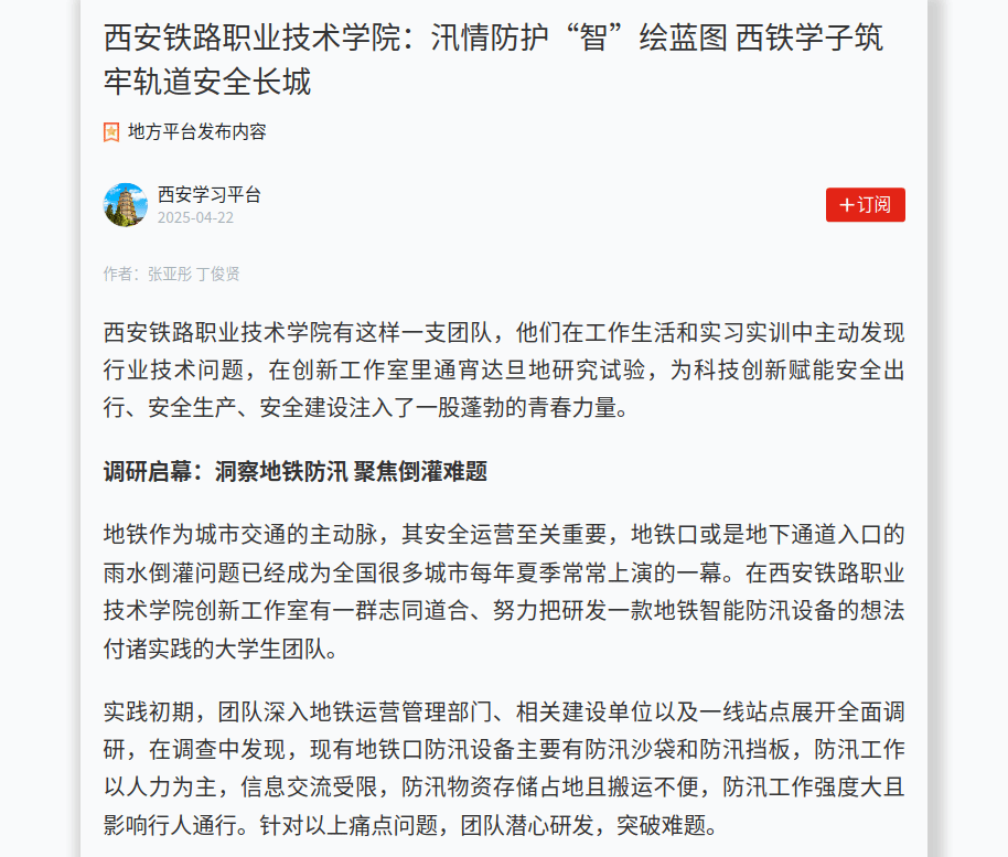 yabo鸭脖官网:汛情防护“智”绘蓝图 西铁学子筑牢轨道安全长城