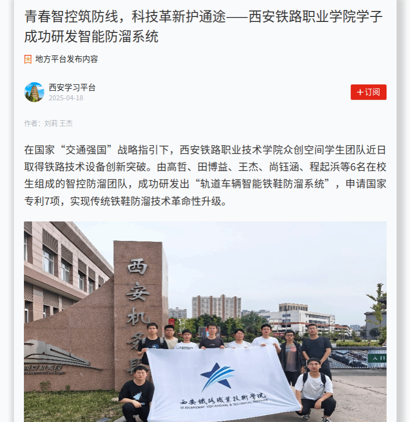 青春智控筑防线,科技革新护通途——西安铁路职业学院学子成功研发智能防溜系统