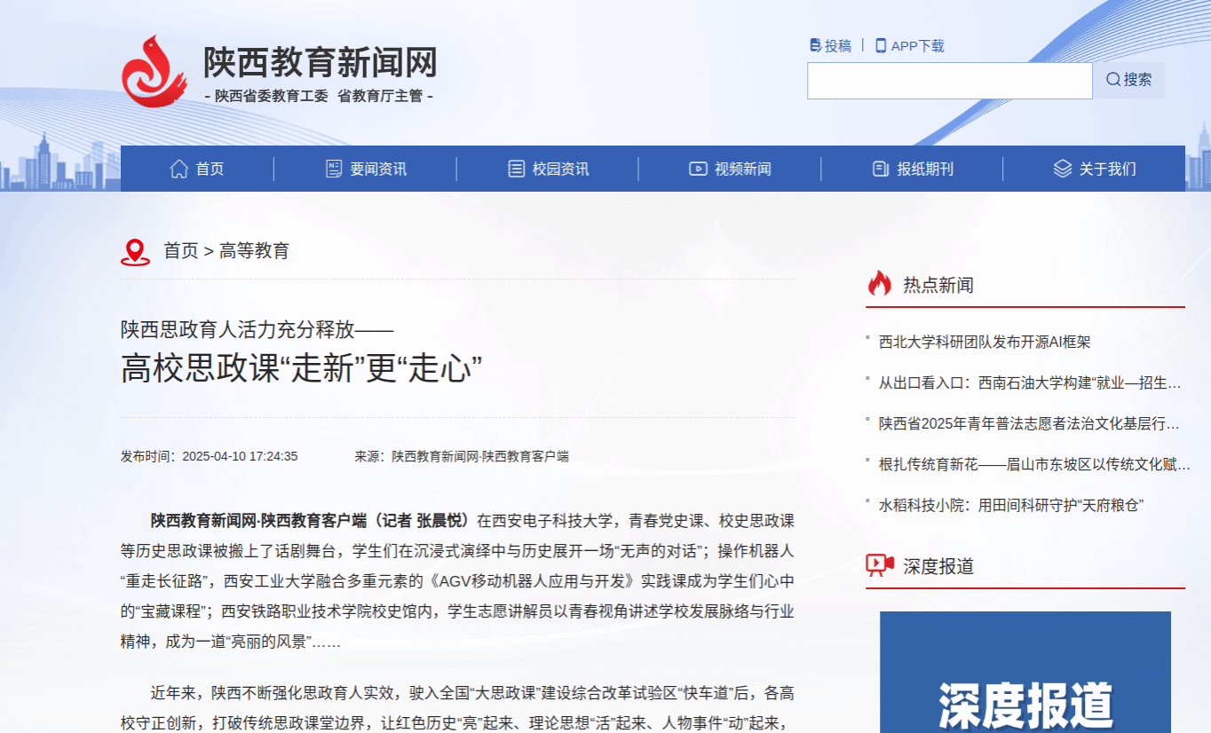 陕西思政育人活力充分释放—— 高校思政课“走新”更“走心”:yabo鸭脖官网校史馆内,学生志愿讲解员以青春视角讲述学校发展脉络与行业精神,成为一道“亮丽的风景