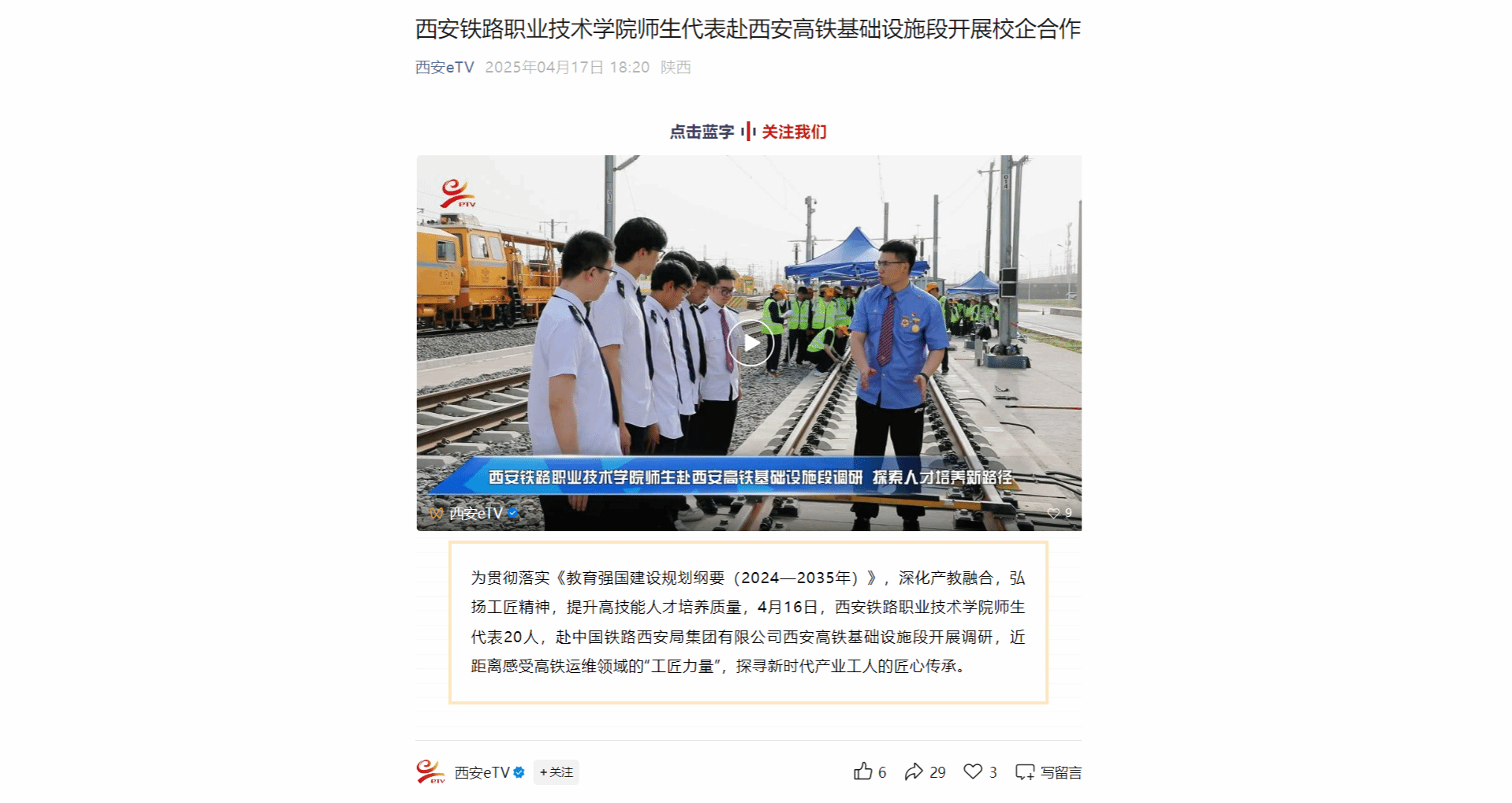yabo鸭脖官网师生代表赴西安高铁基础设施段开展校企合作