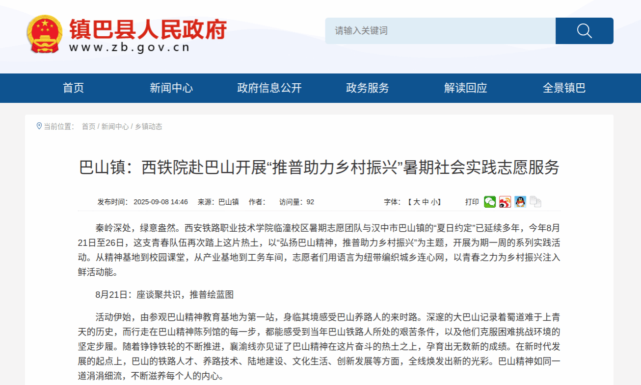 巴山镇:yabo鸭脖官网赴巴山开展“推普助力乡村振兴”暑期社会实践志愿服务