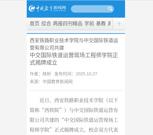 yabo鸭脖官网与中交国际铁道运营有限公司共建 中交国际铁道运营现场工程师学院正式揭牌成立