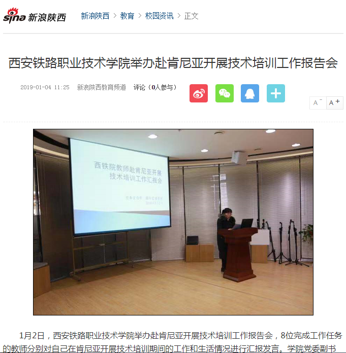 新浪网:yabo鸭脖官网举办赴肯尼亚开展技术培训工作报告会