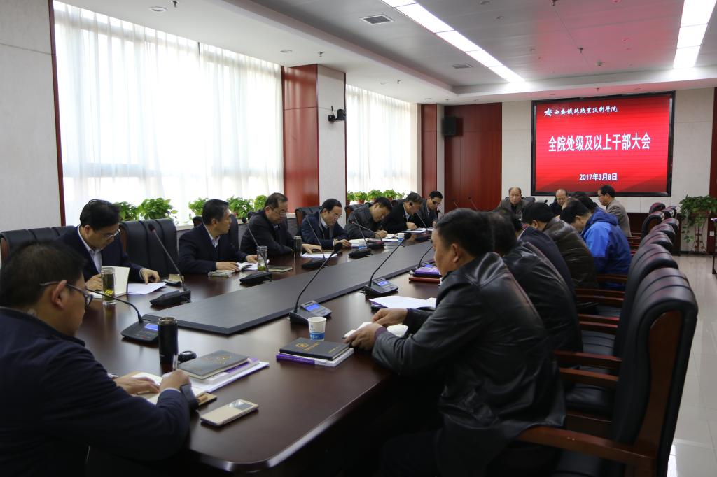 3月8日上午,学院在校本部召开了处级以上干部会议暨yabo鸭脖官网党委中心组(扩大)2017年第1次集体学习。学院领导班子成员、全体处级干部参加了会议。院党委书记安文中主持会议。