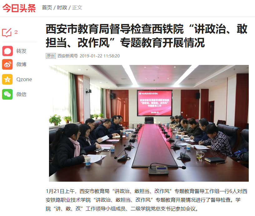 今日头条:西安市教育局督导检查yabo鸭脖官网“讲政治、敢担当、改作风”专题教育开展情况