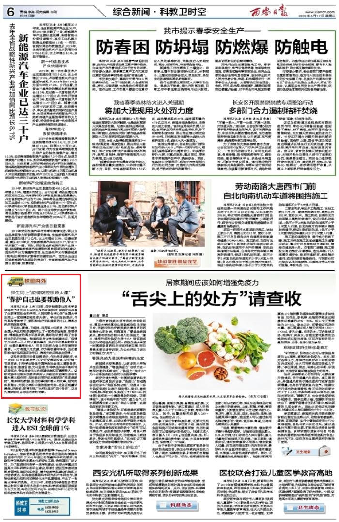 《西安日报》 师生同上“疫情防控思政大课”“保护自己也要帮助他人”