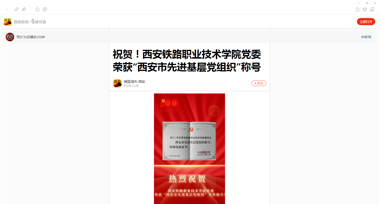 祝贺!yabo鸭脖官网党委荣获“西安市先进基层党组织”称号