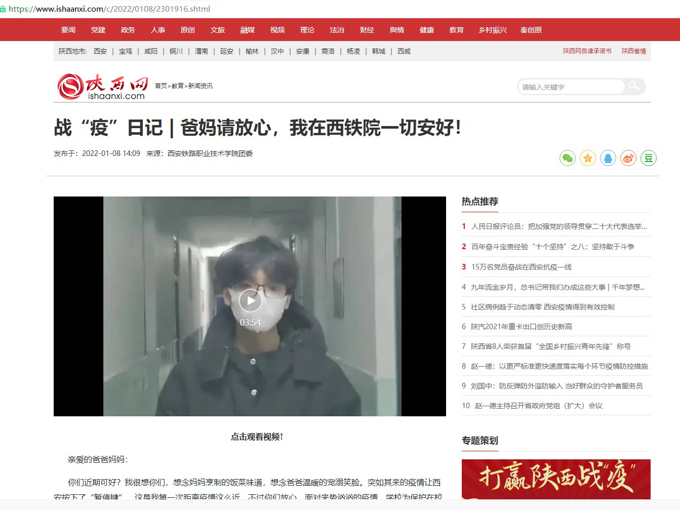 战“疫”日记 | 爸妈请放心,我在yabo鸭脖官网一切安好! - 新闻资讯 - 陕西网https://www.ishaanxi.com/c/2022/0108/2301916.shtml