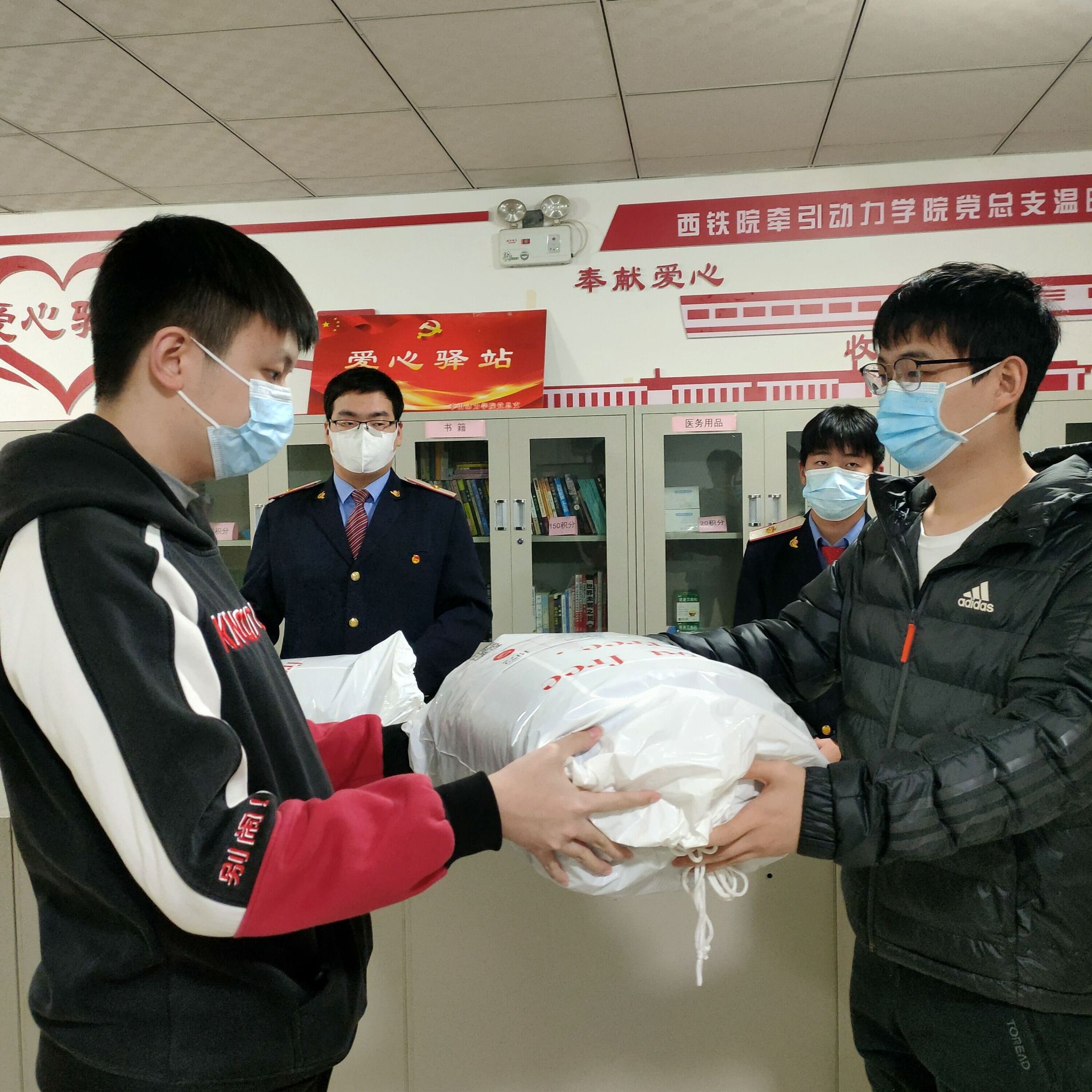 近期天气寒冷,为解决学生燃眉之急,牵引动力学院党总支爱心驿站积极为同学们伸出援手,为同学们购买了爱心被褥,送去了暖暖的温暖和关爱。