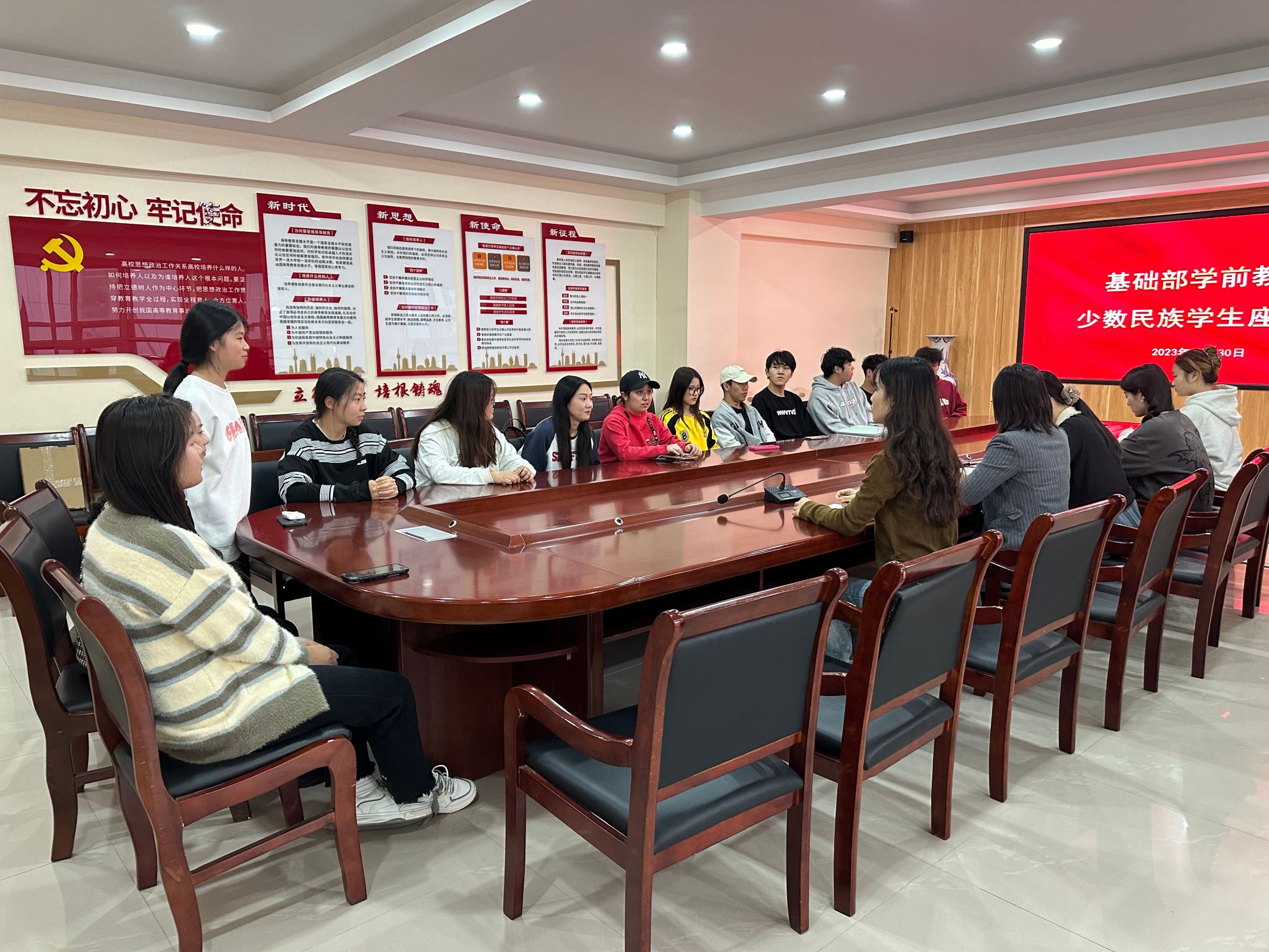 座谈会中,同学们就自己的学习、生活、就业规划等进行交流讨论,学生们普遍表示能够适应在校生活,并且和同学、舍友相处融洽, 感受到了学院和老师同学的关心关爱。之后,张博雅针对学生在校生活、专业学习、就业规划等问题与少数民族学生展开深切交谈,她表示基础部学前教育为同学们提供了各种各样的资源,希望同学们学会整合资源,积极进取、立志成才。建议大家对于就业要提前做好规划,做好和老师的沟通,为日后家乡建设、国家发展和民族复兴做出自己的贡献。