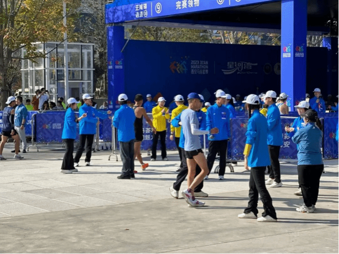 为全面助力2023西安马拉松赛,学院579名大学生志愿者在各自的志愿服务岗位上以最饱满热情和周到的服务助力精彩赛事圆满完成。