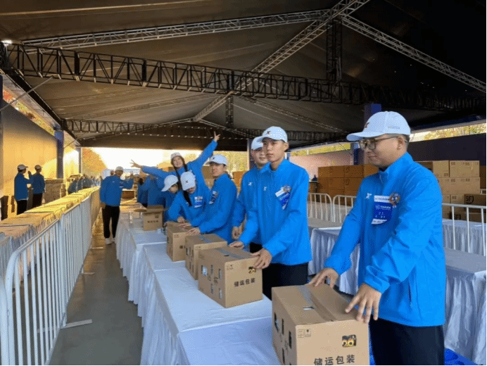 10月29日,凌晨5:00,所有的志愿者身着统一服装蓄势待发,分组乘车,由带队老师负责带队前往指定地点。7:00,所有志愿者全部到岗,按照赛事所需,志愿者们分工明确,在比赛终点的各个服务点、补给点、指引点,有条不紊的为参赛选手提供赛道指引、终点计时、赛道终点拉冲刺带、行李寄存、饮水食品补给、完赛物资发放及赛后的拉伸、冰敷,以饱满的热情全程为马拉松保驾护航。在做好赛事服务的同时,不断为参赛选手呐喊助威、加油打气,用自己充满朝气又富有活力的青春热情,点燃选手们的拼搏激情,用汗水和激情诠释挑战自我、永不放弃的马拉松精神。