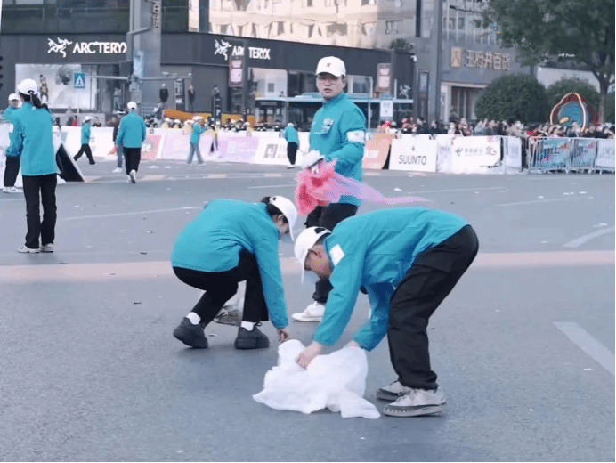 比赛结束后,志愿者认真负责的及时进行垃圾回收,确保赛道的整洁和运动员与行人的安全。热情专业的服务水准,给参赛选手们留下了深刻的印象,他们的身影也成为了本次马拉松赛场上别样的风景。