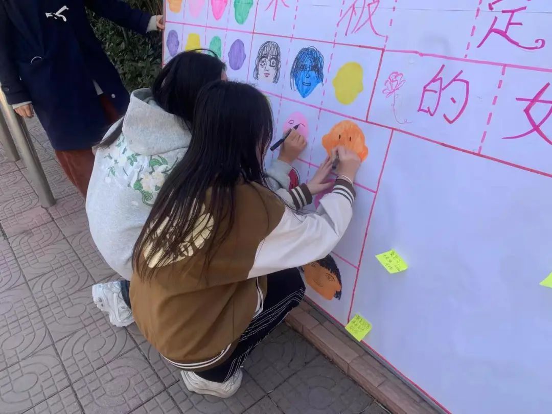 "画出心中的自己"活动。同学们拿着纸笔,在宣传板上画出了心中的自己,通过画笔敞开心扉展现自己最真实的想法,释放内心的压力。