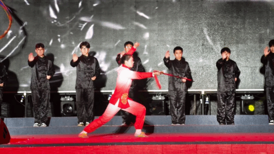 电气工程学院武术社与罗欣瑶老师的武术表演《剑砺锋芒,刀锋蕴力》,刀光剑影间尽显青春热血,彰显了新时代青年的拼搏精神。