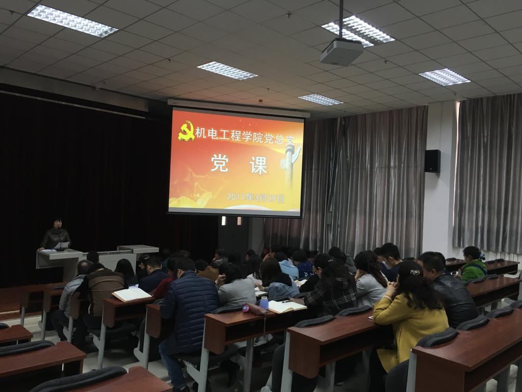 3月29日下午,机电工程学院党总支书记张雅兰在机电楼一楼多功能厅为全院党员上党课。