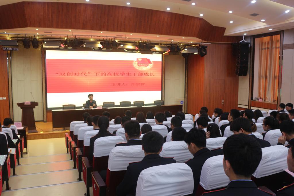 4月5日,交通运输学院党总支书记仵崇智在港务校区办公楼学术报告厅为第五期青年马克思主义者(大学生骨干)培训班学员做了题为 “‘双创时代’下的高校学生干部成长”的主题讲座。